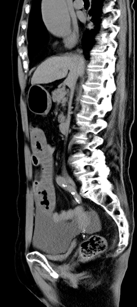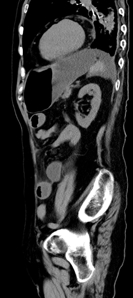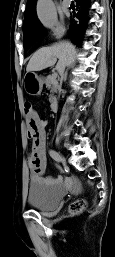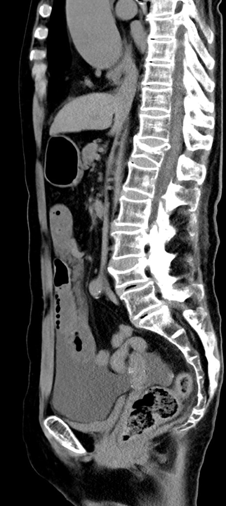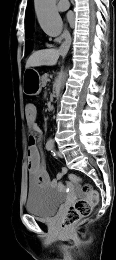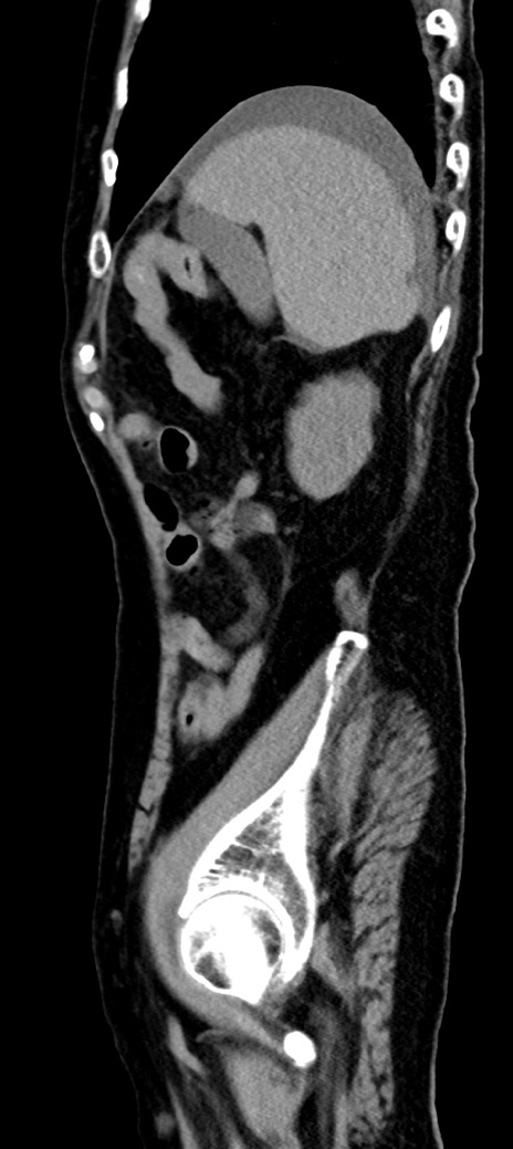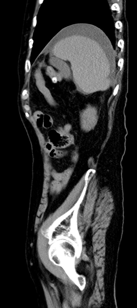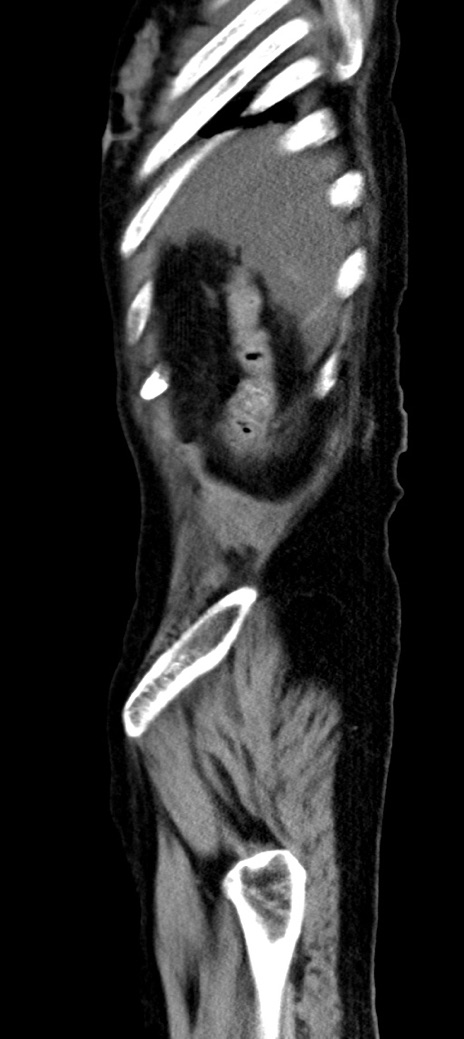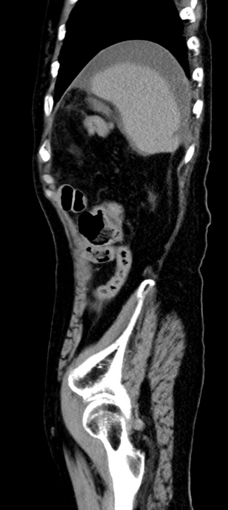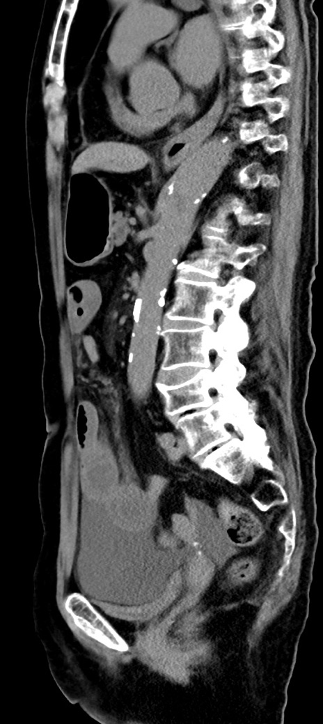 【症例】90歳代女性 【主訴】腹痛・嘔吐 【現病歴】 食欲低下、嘔吐があり昨日他院受診。肺炎と診断され入院となる。入院後より腹部全体に圧痛あり。胃管留置され経過みていたが、症状持続するため、当院転院となる。 【既往歴】胸椎圧迫骨折、胆石症 【身体所見】腹部:中央に激痛あり、圧痛あり、反跳痛不明 【データ】WBC 17100、CRP 18.82