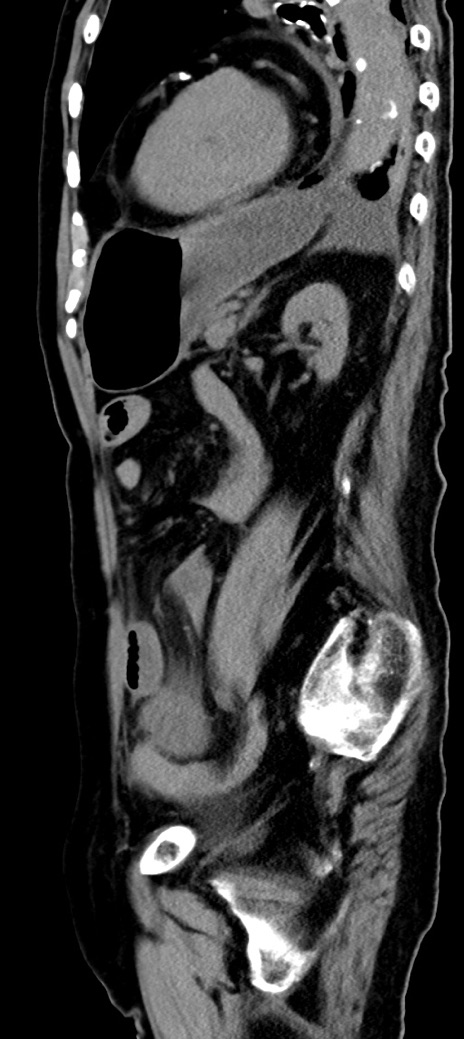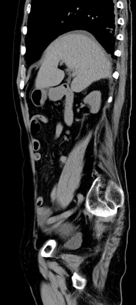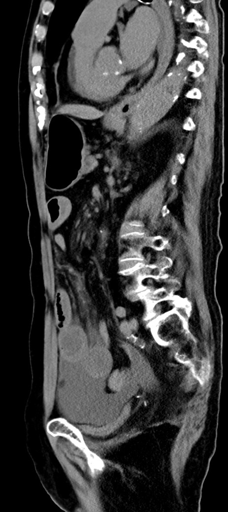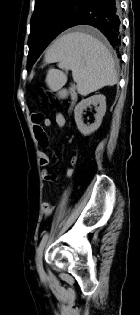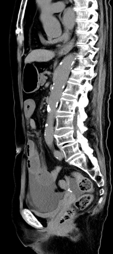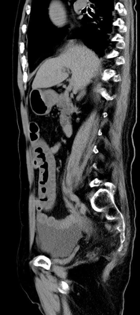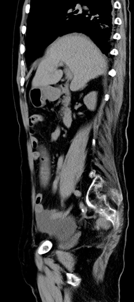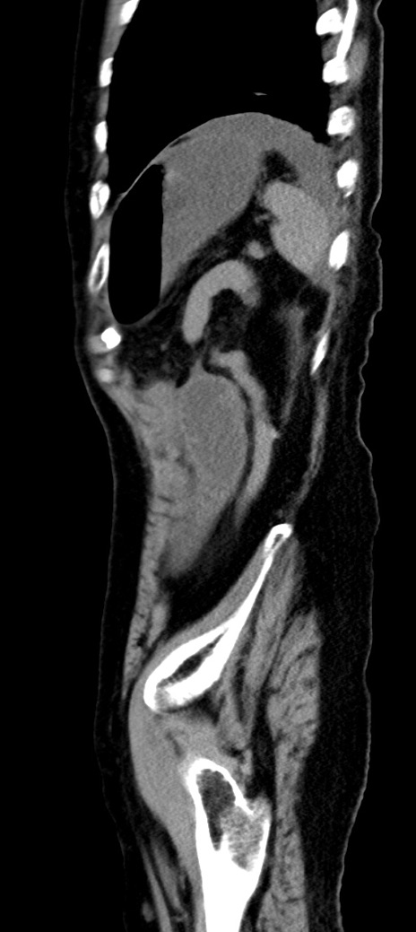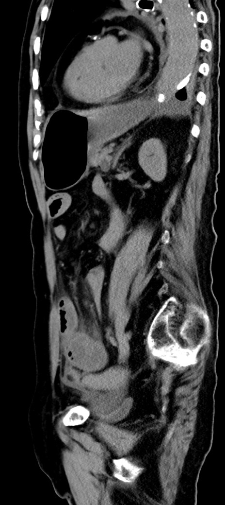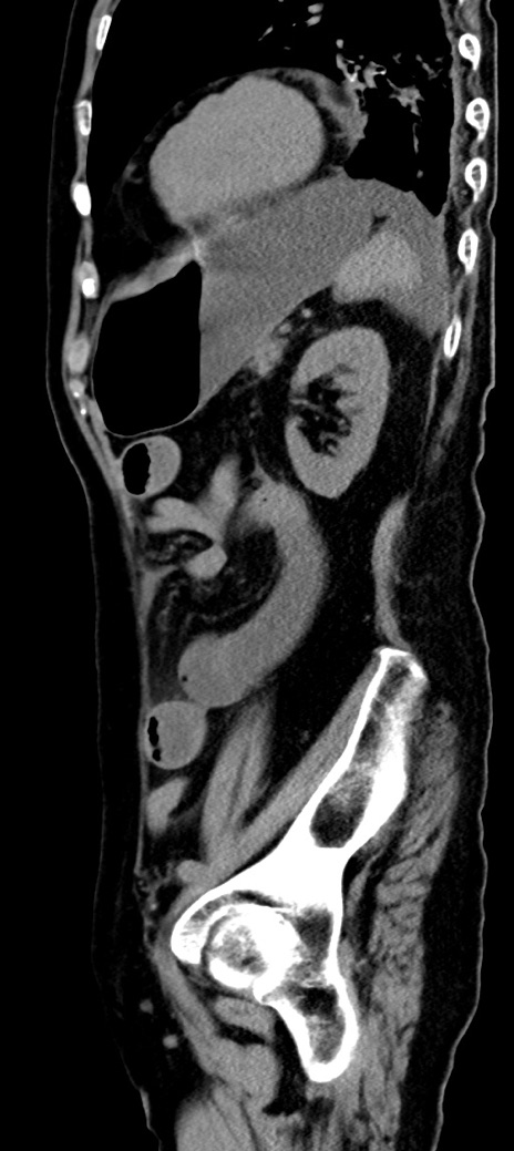 【症例】90歳代女性 【主訴】腹痛・嘔吐 【現病歴】 食欲低下、嘔吐があり昨日他院受診。肺炎と診断され入院となる。入院後より腹部全体に圧痛あり。胃管留置され経過みていたが、症状持続するため、当院転院となる。 【既往歴】胸椎圧迫骨折、胆石症 【身体所見】腹部:中央に激痛あり、圧痛あり、反跳痛不明 【データ】WBC 17100、CRP 18.82