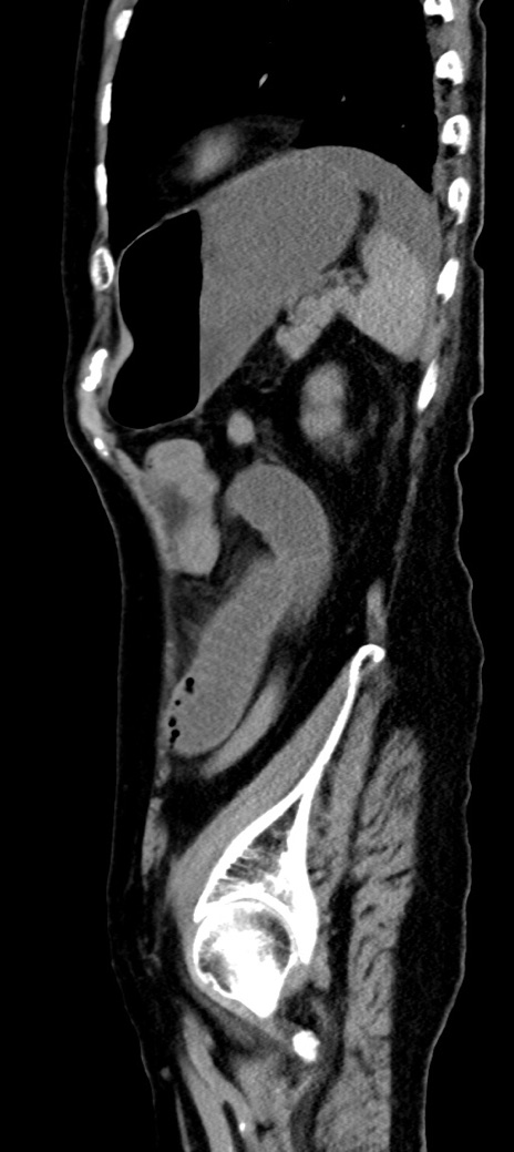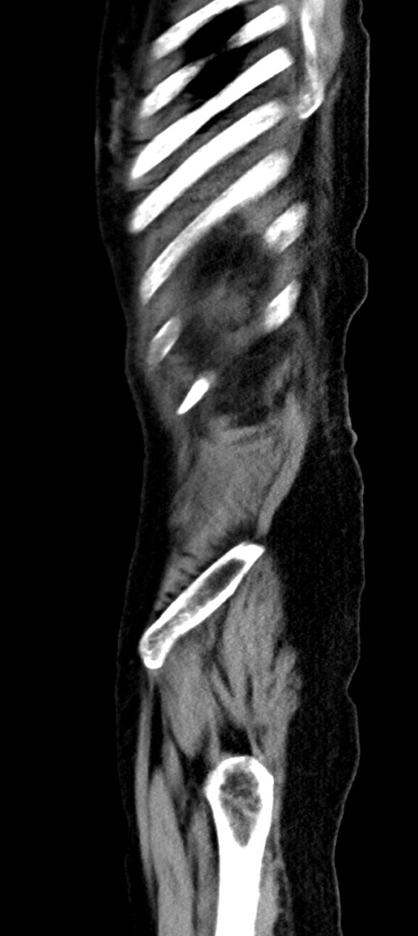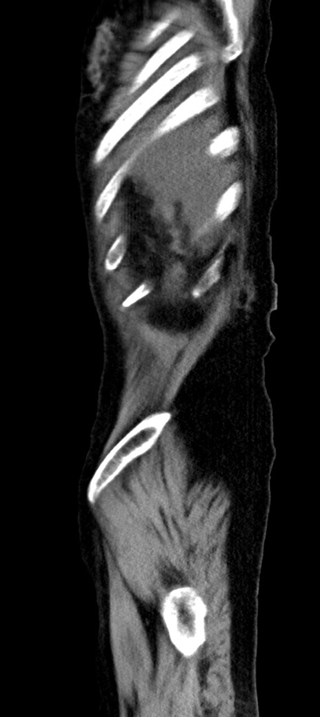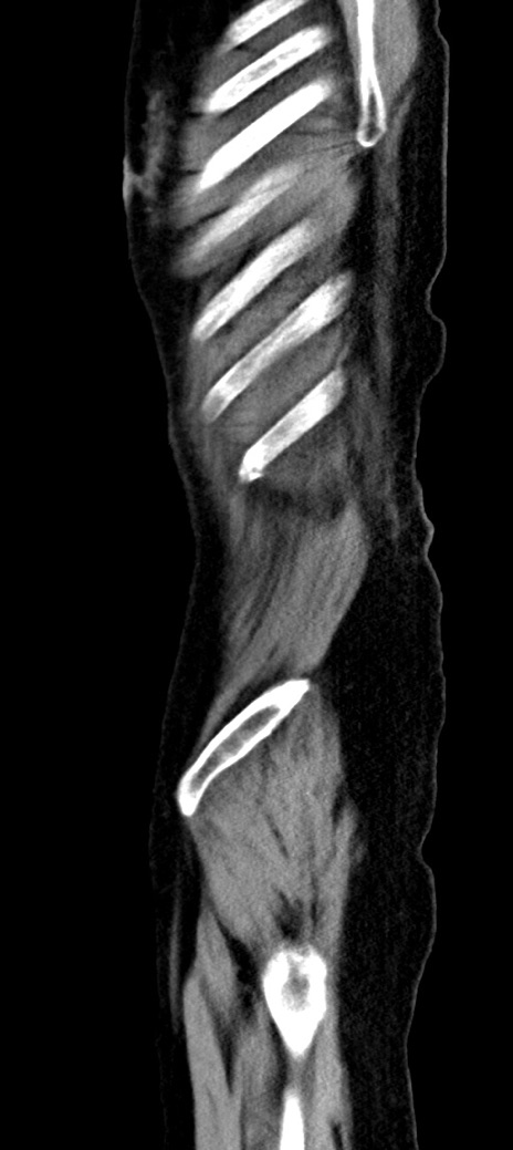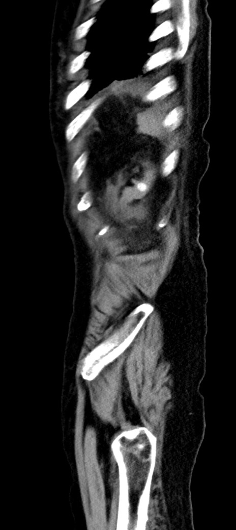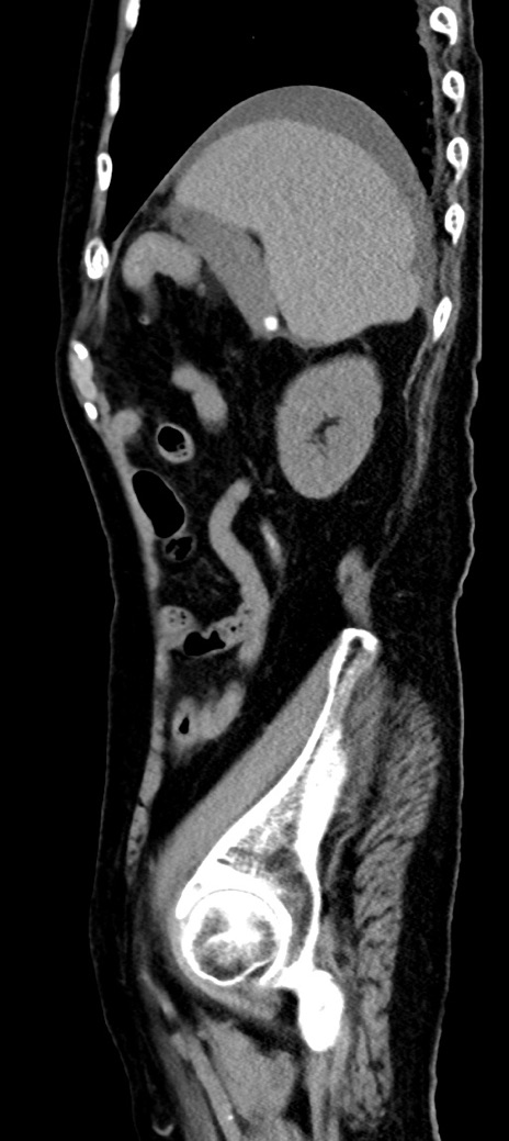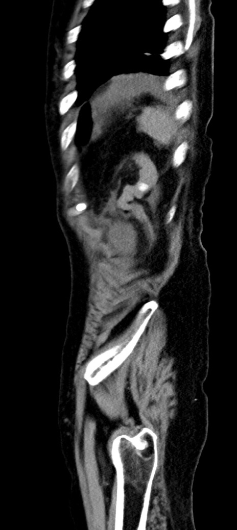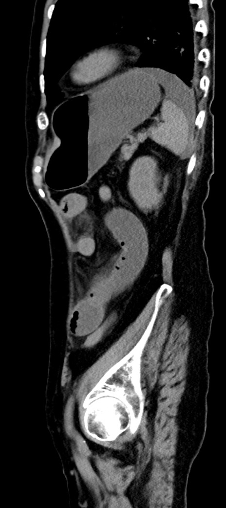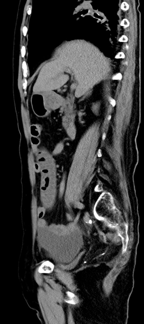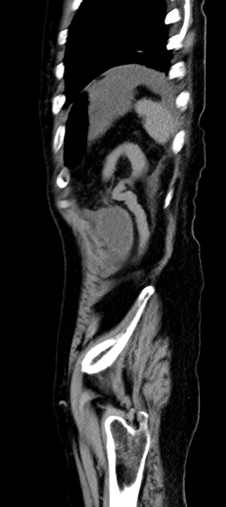 【症例】90歳代女性 【主訴】腹痛・嘔吐 【現病歴】 食欲低下、嘔吐があり昨日他院受診。肺炎と診断され入院となる。入院後より腹部全体に圧痛あり。胃管留置され経過みていたが、症状持続するため、当院転院となる。 【既往歴】胸椎圧迫骨折、胆石症 【身体所見】腹部:中央に激痛あり、圧痛あり、反跳痛不明 【データ】WBC 17100、CRP 18.82