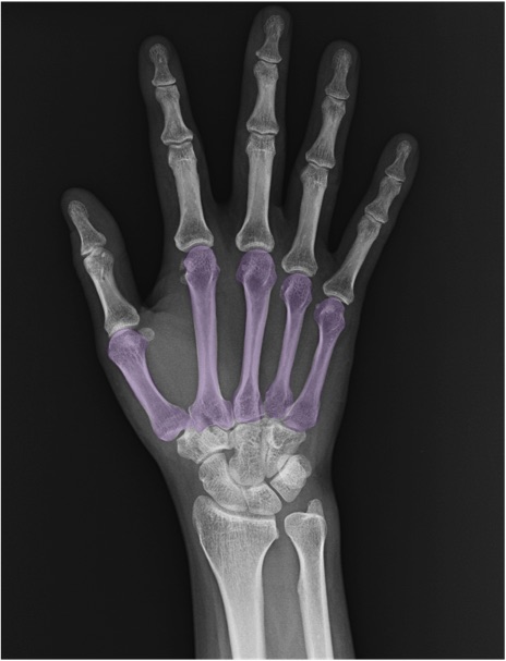 中手骨(metacarpal bone)の手関節レントゲン画像における正常解剖