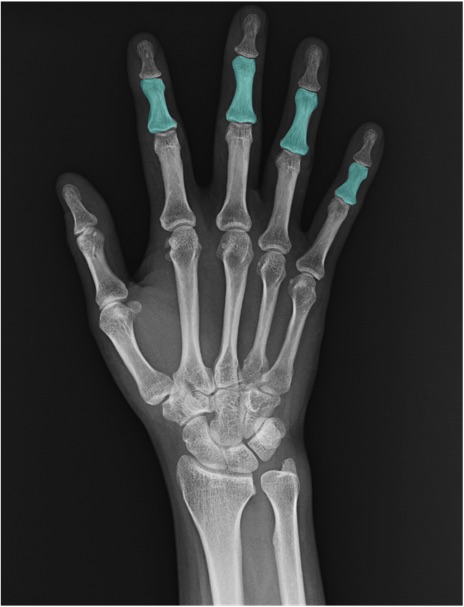 中節骨(middle phalanx)の手関節レントゲン画像における正常解剖
