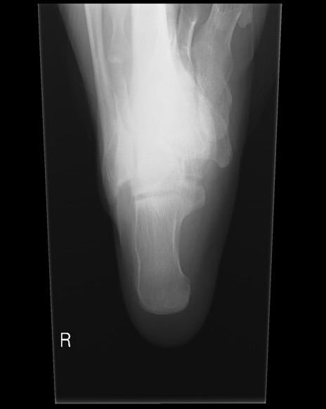 【症例】50歳代男性 【主訴】左踵部の痛み、腫脹 【現病歴】4日前に1.5m程度の高さのトラックの荷台から荷物と一緒に転落し、左足部を打撲。近医受診し、当院へ紹介受診となる。 【身体所見】左踵部の腫脹、圧痛あり。