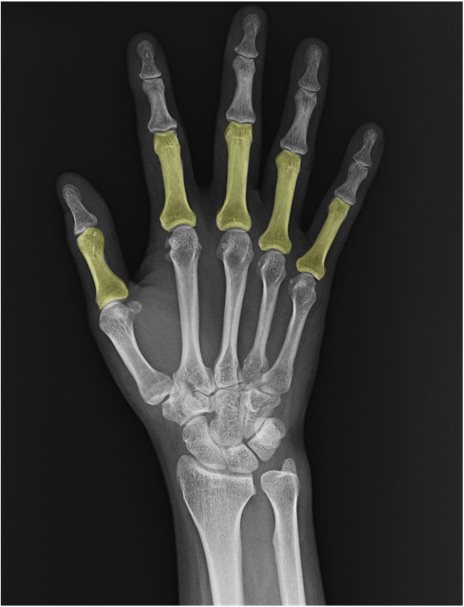 基節骨(proximal phalanx)の手関節レントゲン画像における正常解剖