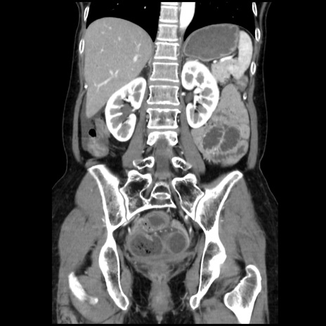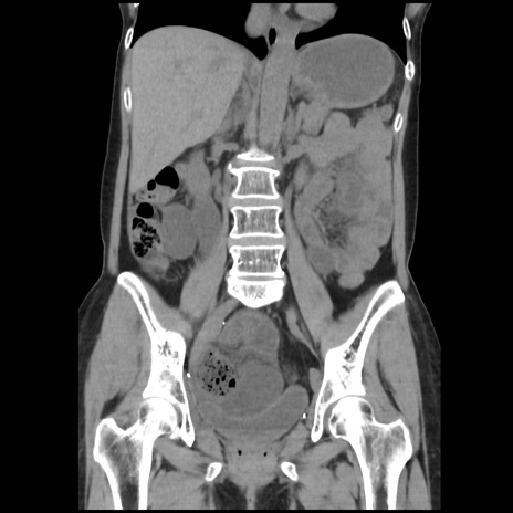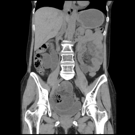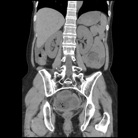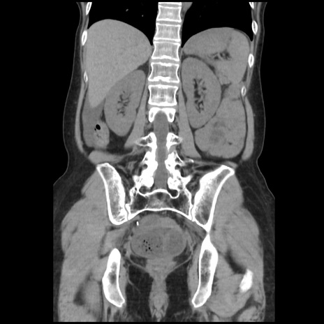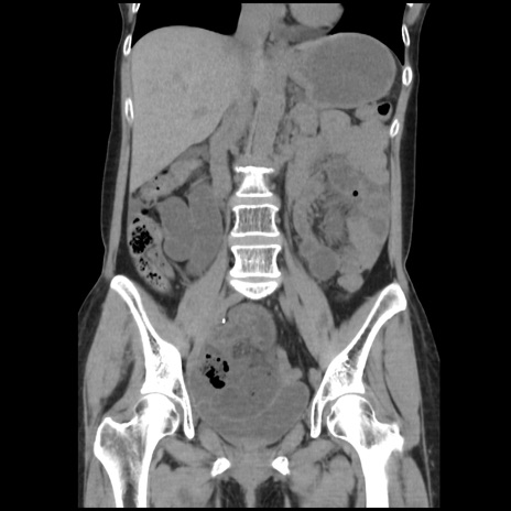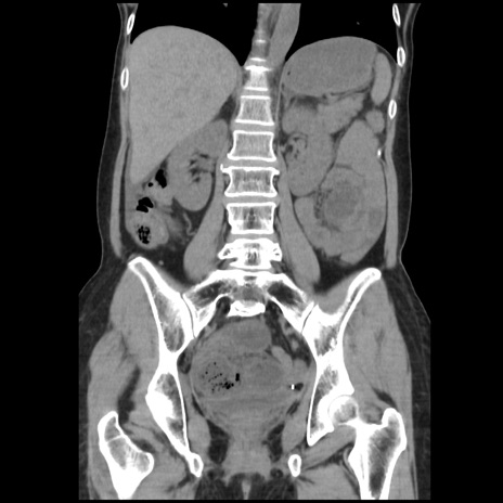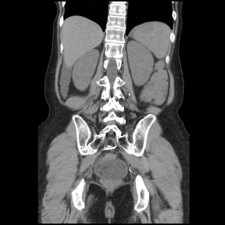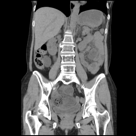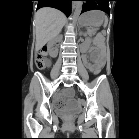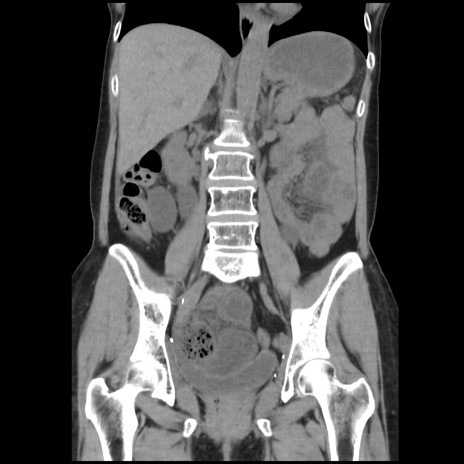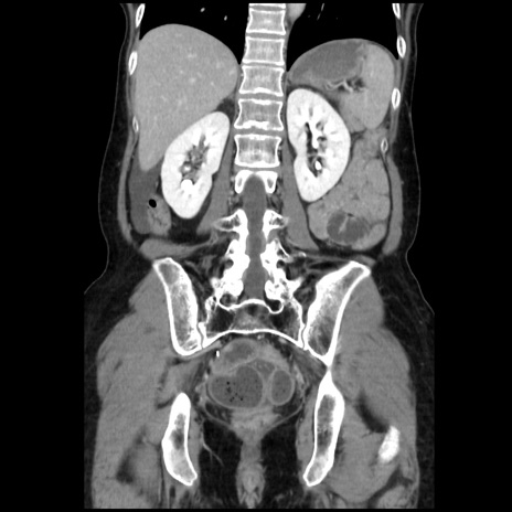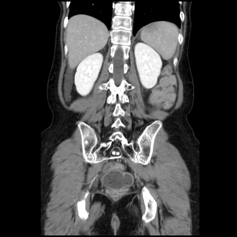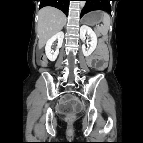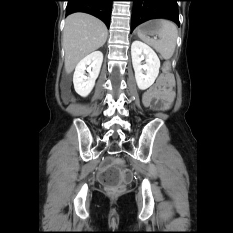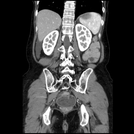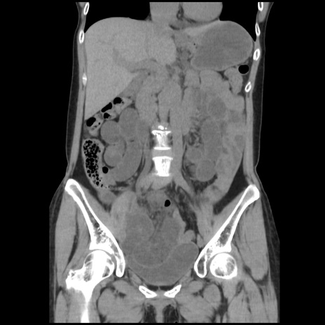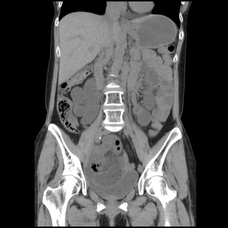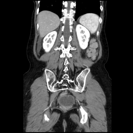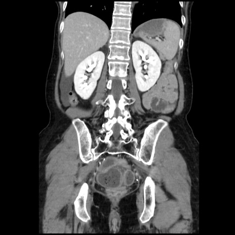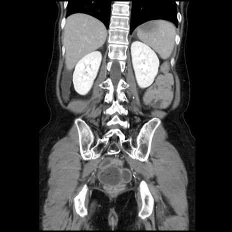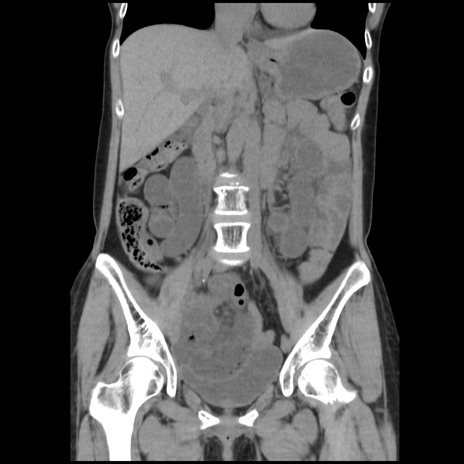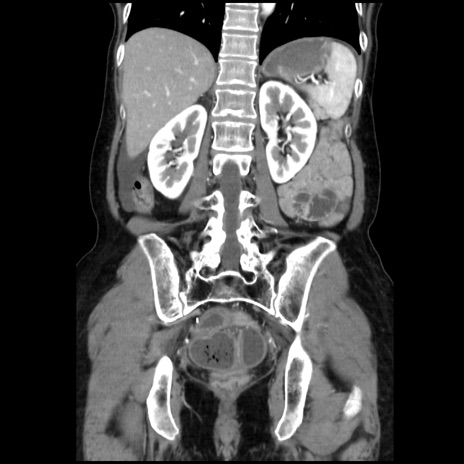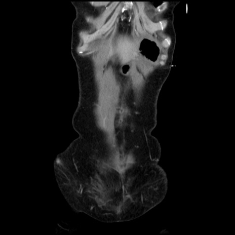 【症例】40歳代 女性 【主訴】上腹部痛、嘔気・嘔吐 【現病歴】約9時間前頃から急に上腹部痛、嘔気、嘔吐が出現。改善しないため救急要請。 【既往歴】子宮頚癌(広汎子宮全摘術、放射線療法)、腸閉塞 【身体所見】腹部:平坦、軟、腸雑音亢進、上腹部を中心に腹部全体に圧痛あり。 【データ】WBC 8400、CRP 0.03