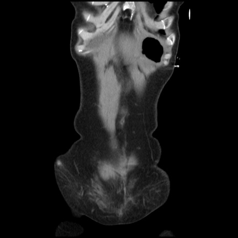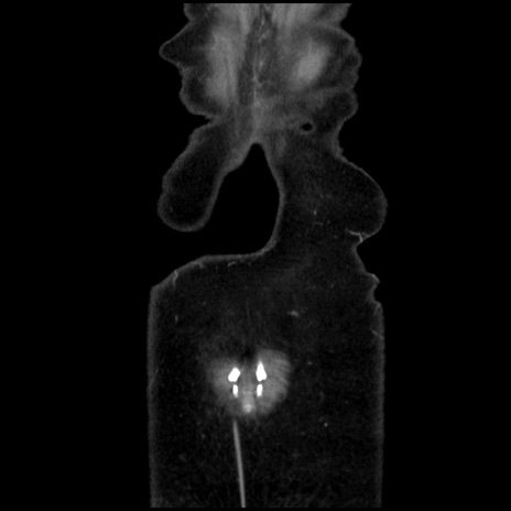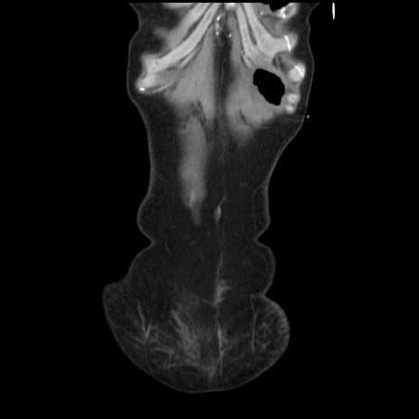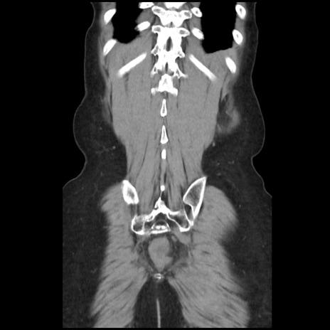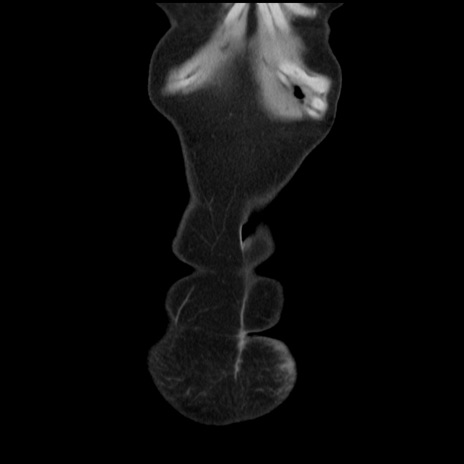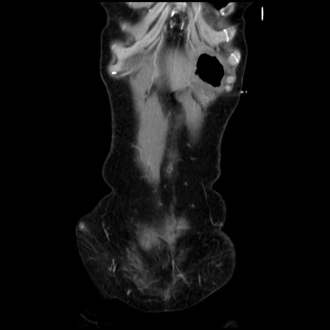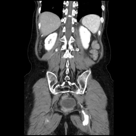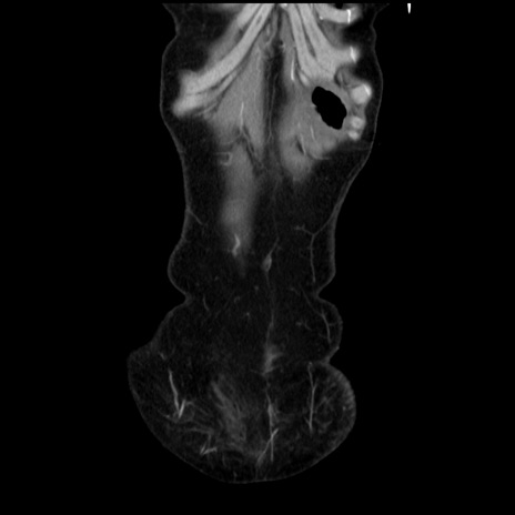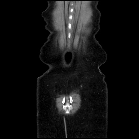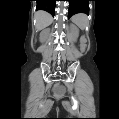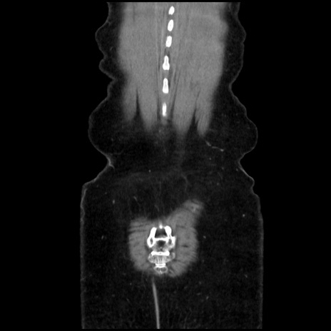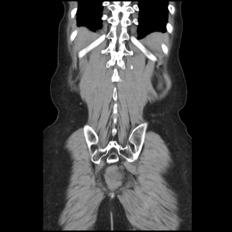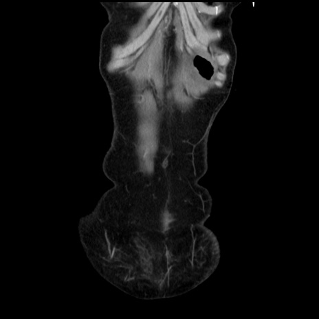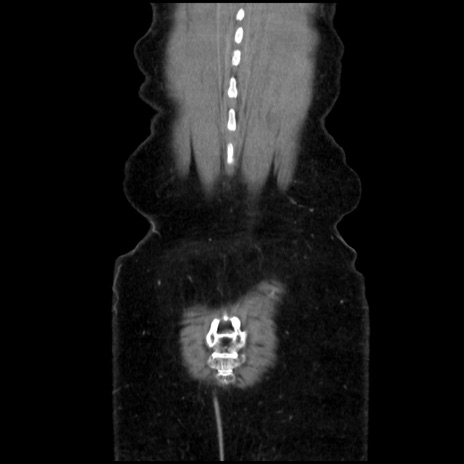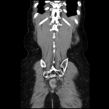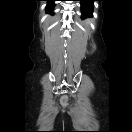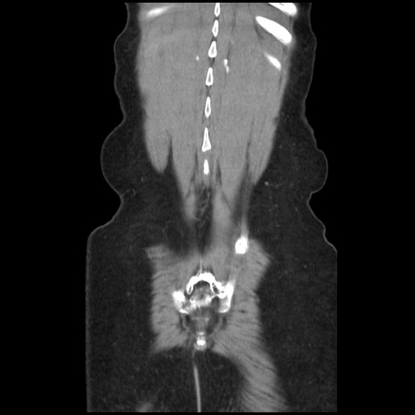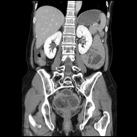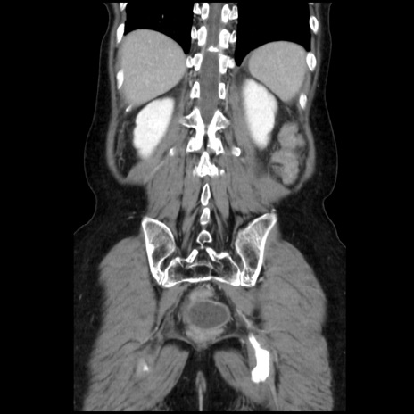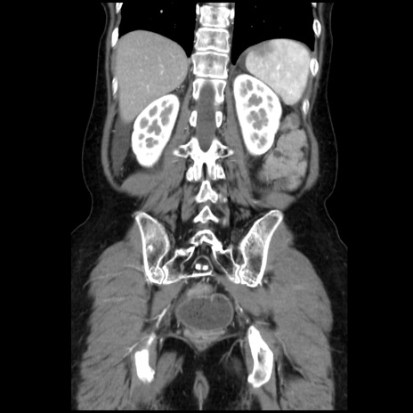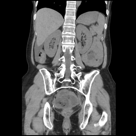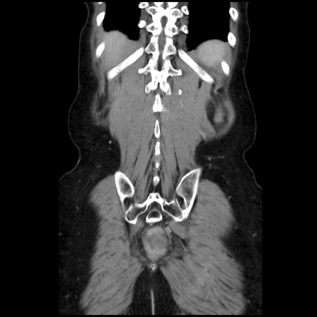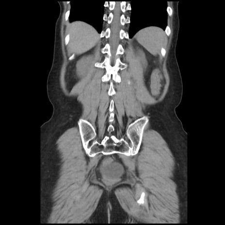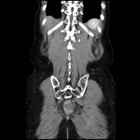 【症例】40歳代 女性 【主訴】上腹部痛、嘔気・嘔吐 【現病歴】約9時間前頃から急に上腹部痛、嘔気、嘔吐が出現。改善しないため救急要請。 【既往歴】子宮頚癌(広汎子宮全摘術、放射線療法)、腸閉塞 【身体所見】腹部:平坦、軟、腸雑音亢進、上腹部を中心に腹部全体に圧痛あり。 【データ】WBC 8400、CRP 0.03