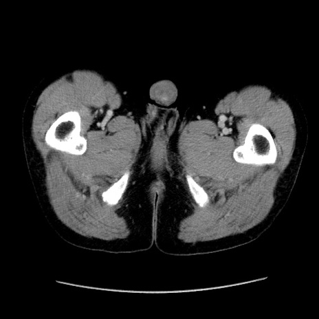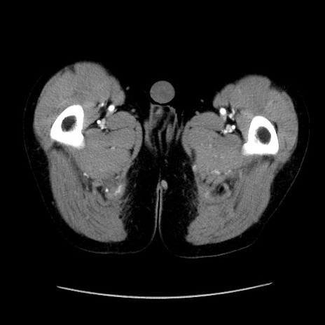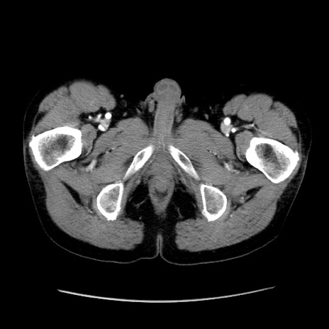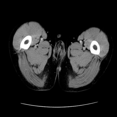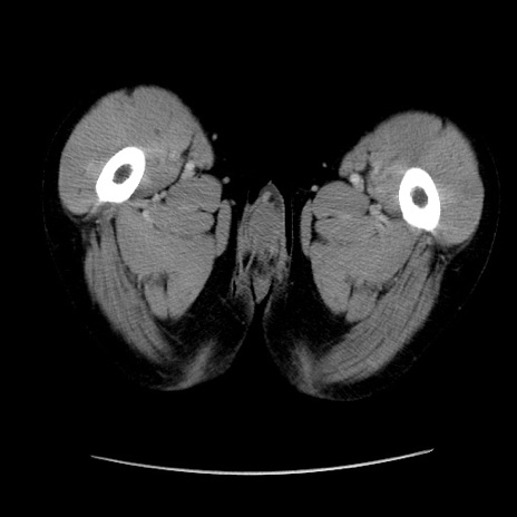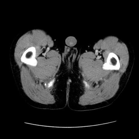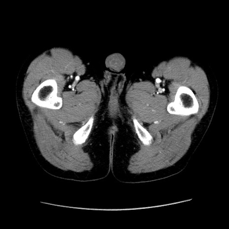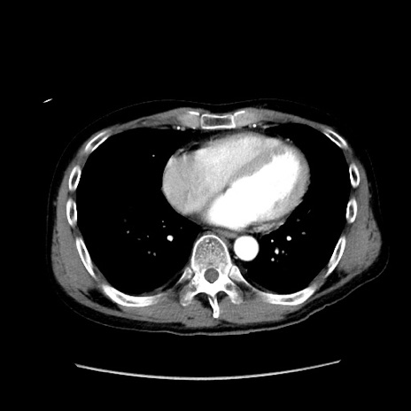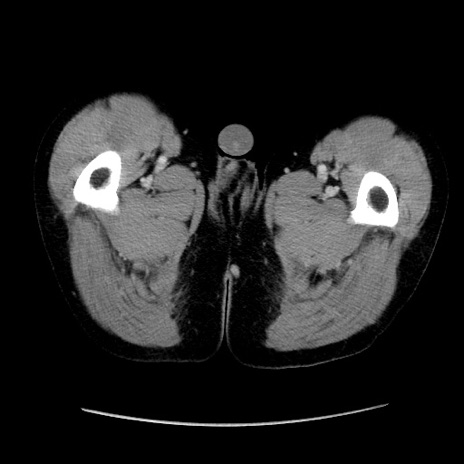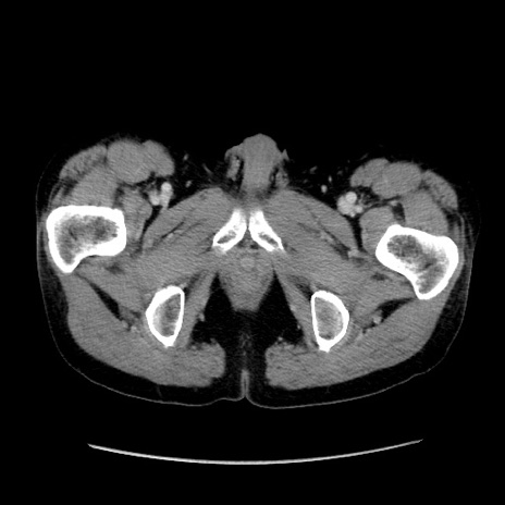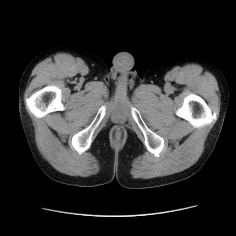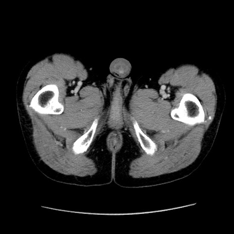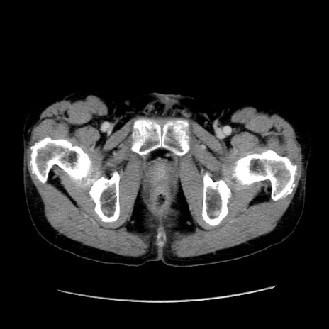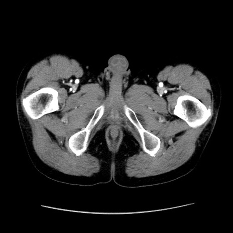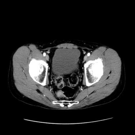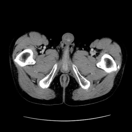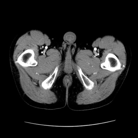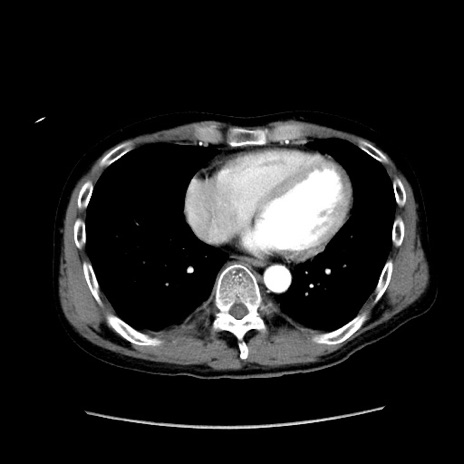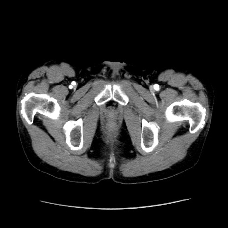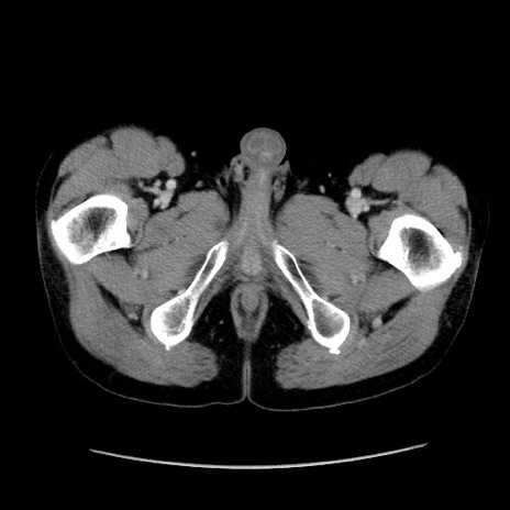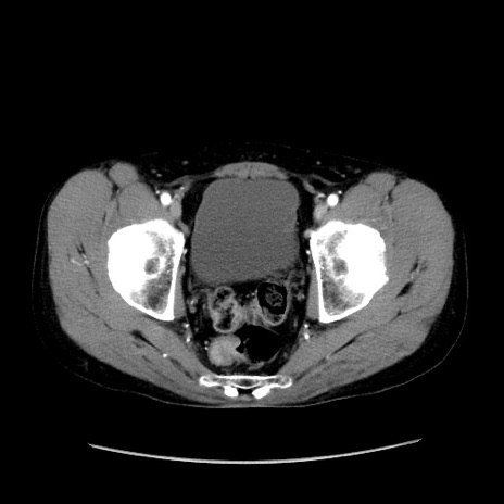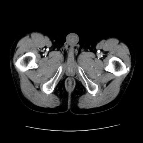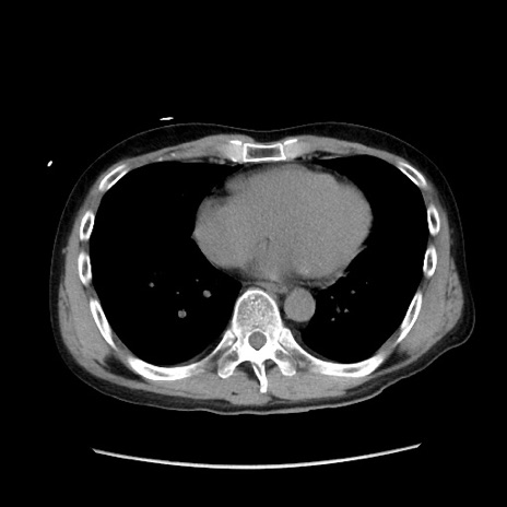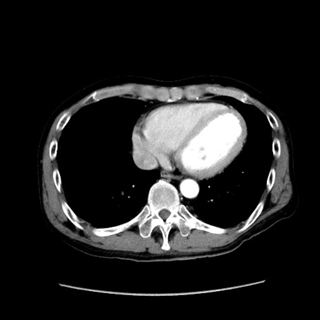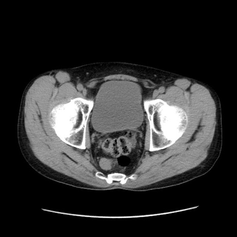 【症例】40歳代 男性 【主訴】腹痛 【現病歴】4時間ほど前に電車に乗車中に臍部上より腹痛出現。徐々に増悪し起立困難となり、救急外来受診。生ものは数日食べていない。今朝お雑煮を食べた。 【既往歴】なし 【身体所見】BT 36.8℃、BP 117/84mmHg、HR 91/min、SpO2 97%、苦悶様、腹部:臍上部広範囲圧痛あり、反跳痛± 【データ】WBC 8100、CRP 0.03