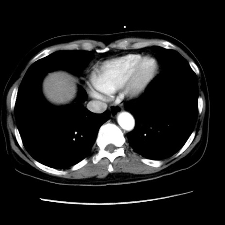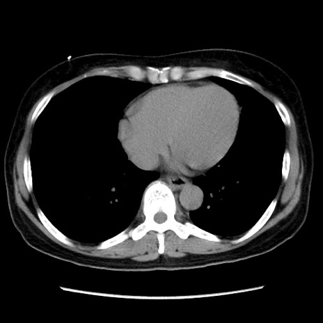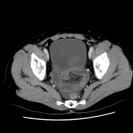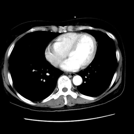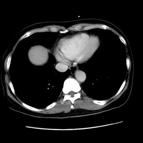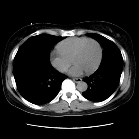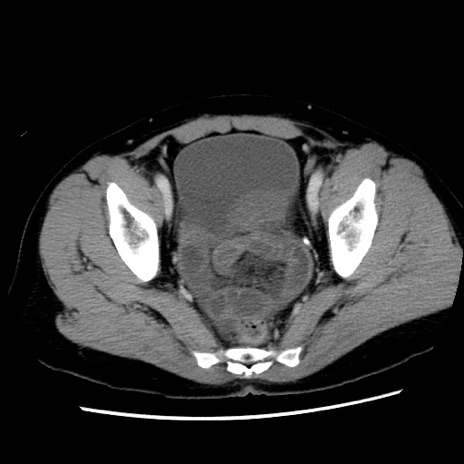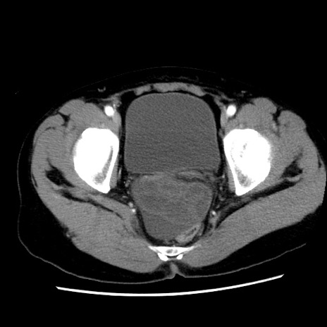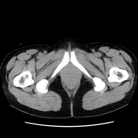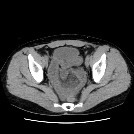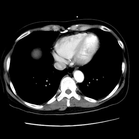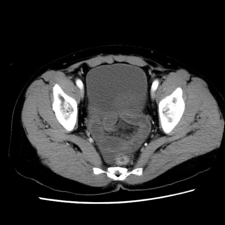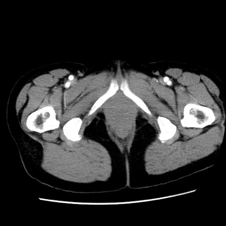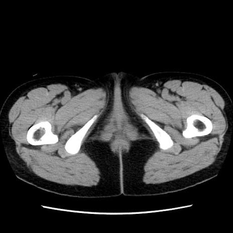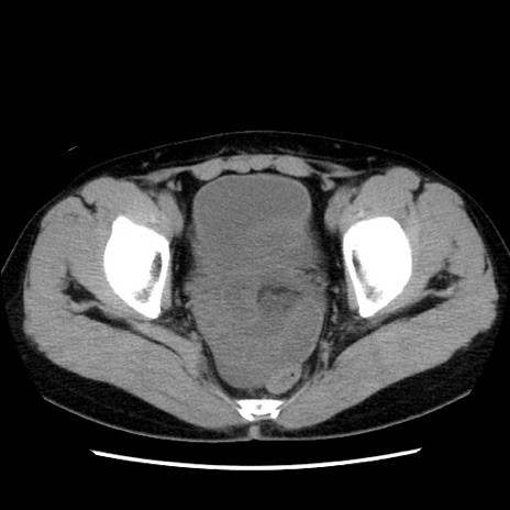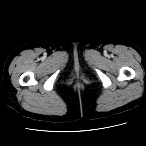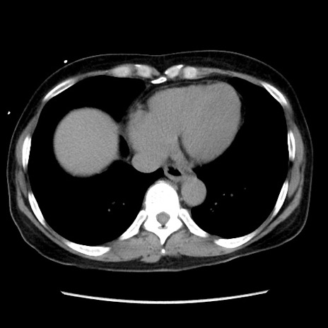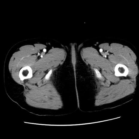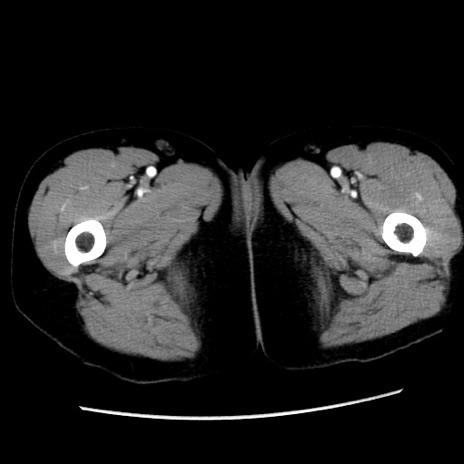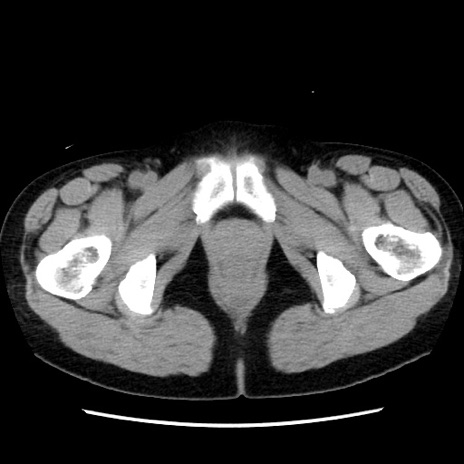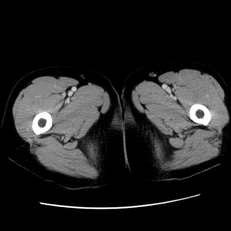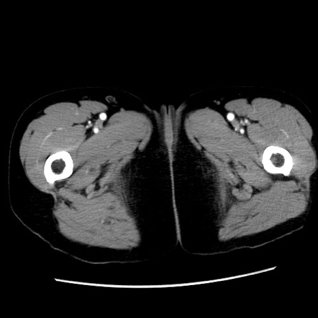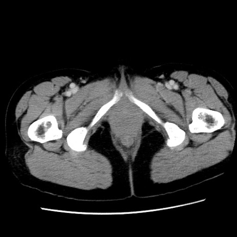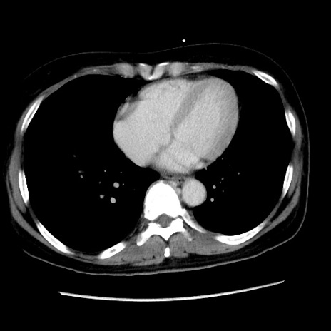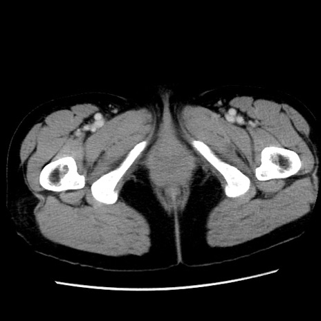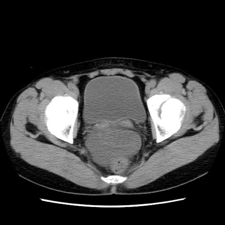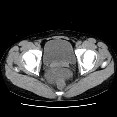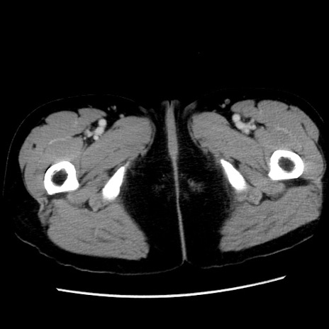 【症例】 50歳代女性 【主訴】 腹痛 【現病歴】前日生レバーを食べた。今朝に排便あり。 昼前に突然発症の腹痛を生じ、当院救急外来を受診した。 【既往歴】 子宮筋腫にてで子宮全摘後 【身体所見】 意識清明、腹部:平坦、軟、下腹部やや左を中心に圧痛・反跳痛あり、筋性防御あり 【データ】WBC 7800、CRP 0.07