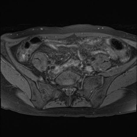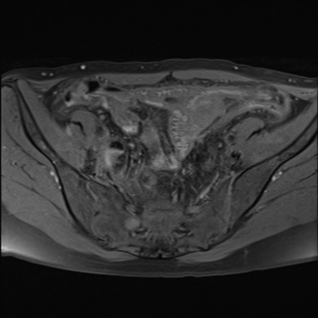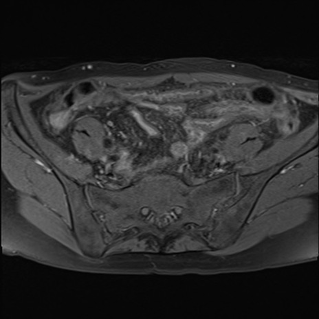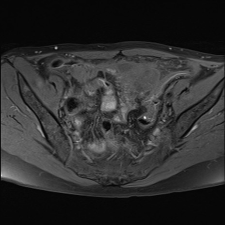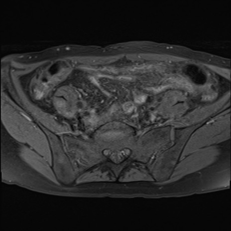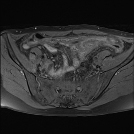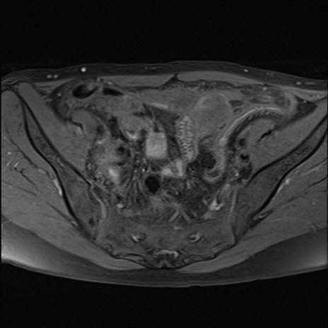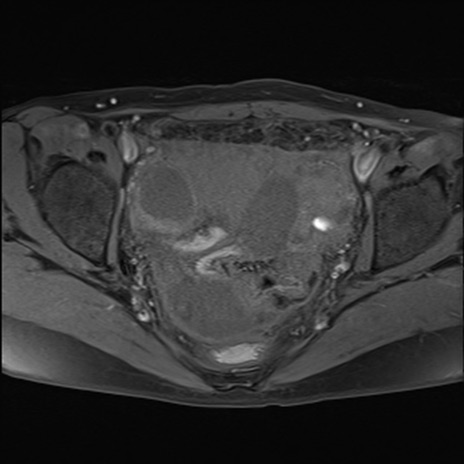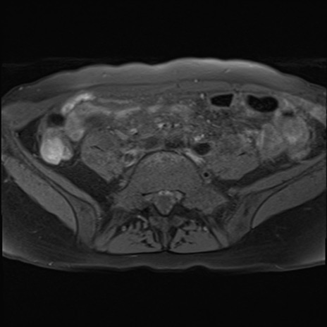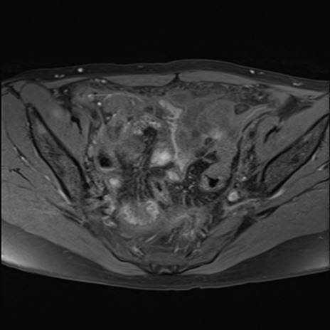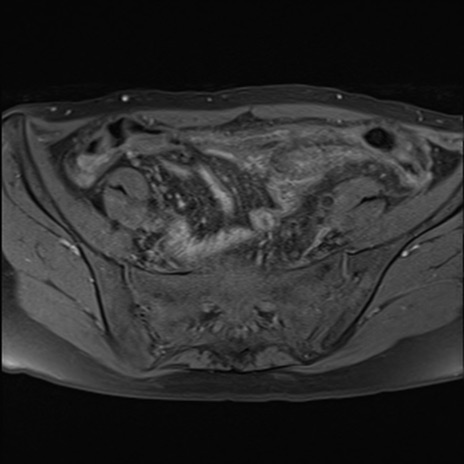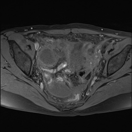 【症例】40歳代女性 【主訴】上下腹部痛 【現病歴】2日目から下腹部痛あり。夜間は痛みで眠れなかった。昨日より上腹部痛と下痢が出現。臥位で痛みは軽快したため、休んでいた。本日になって臥位でも立位でも痛みが強くなってきたため救急要請。 【既往歴】子宮内膜症 【身体所見】部:平坦・軟、左上下腹部に圧痛あり、反跳痛あり。 【データ】WBC 21800、CRP 26.78