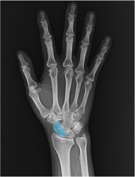 中手骨(metacarpal bone) 基節骨(proximal phalanx) 中節骨(middle phalanx) 末節骨(distal phalanx) 橈骨(radius) 尺骨(ulna) 尺骨茎状突起(ulnar styloid process)