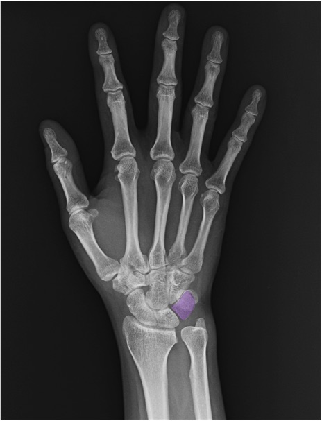 中手骨(metacarpal bone) 基節骨(proximal phalanx) 中節骨(middle phalanx) 末節骨(distal phalanx) 橈骨(radius) 尺骨(ulna) 尺骨茎状突起(ulnar styloid process)