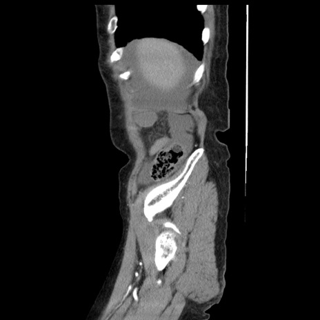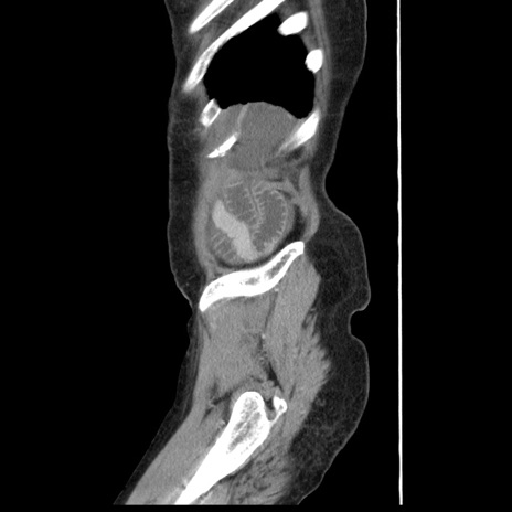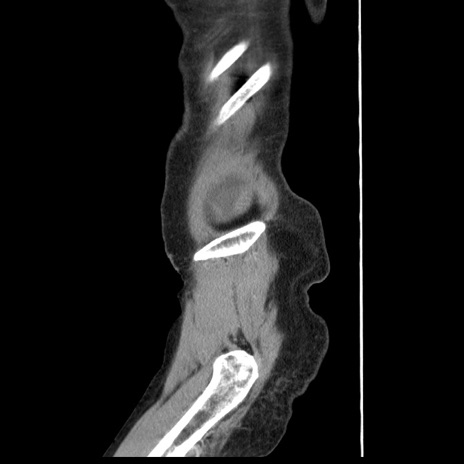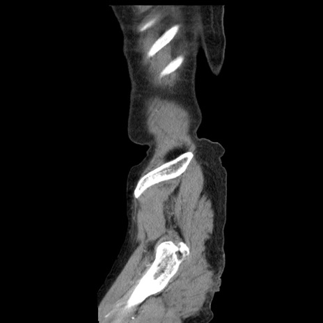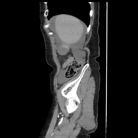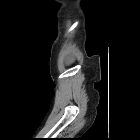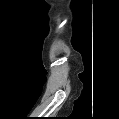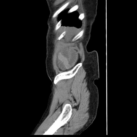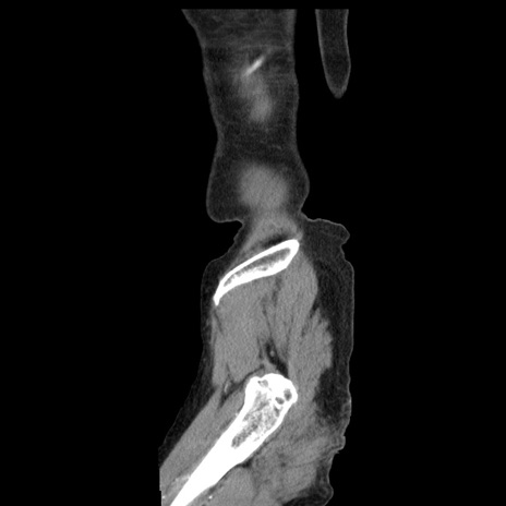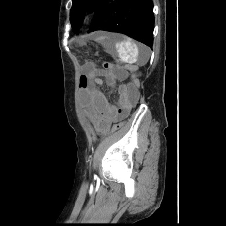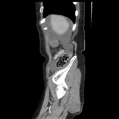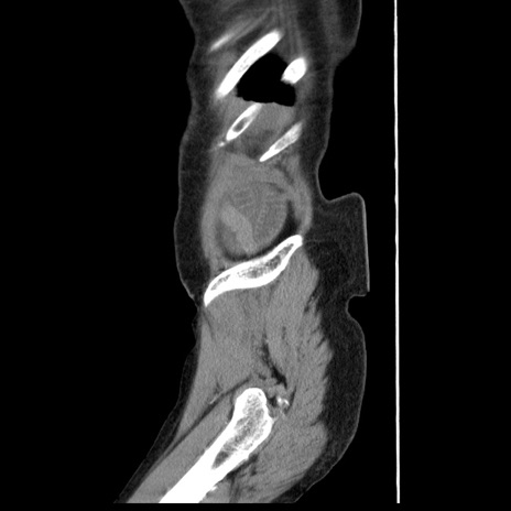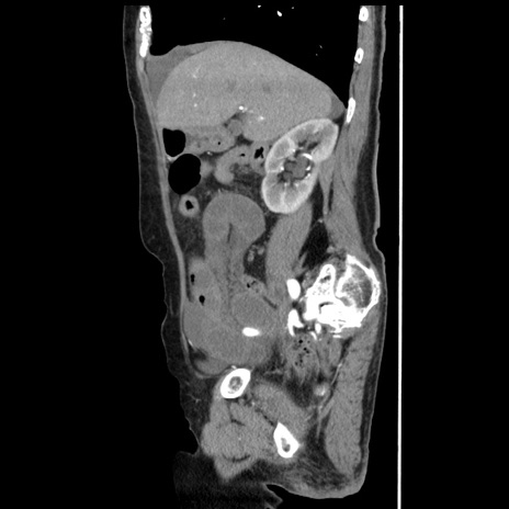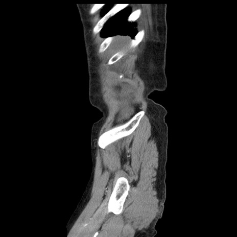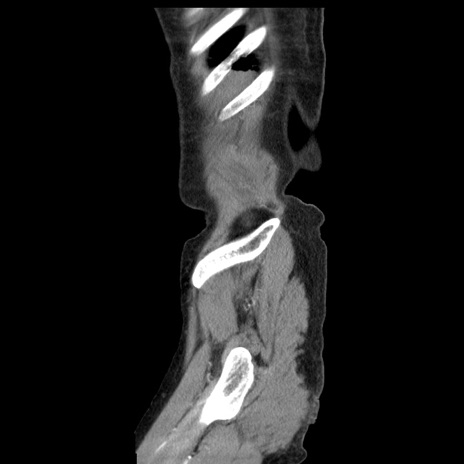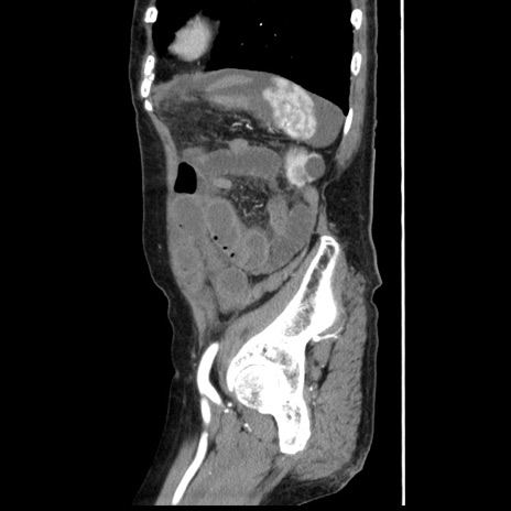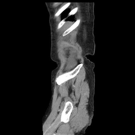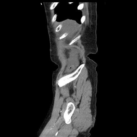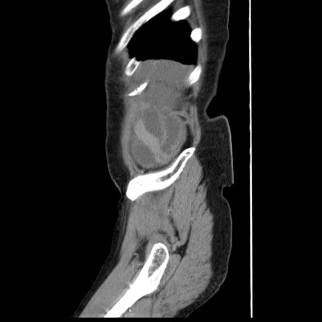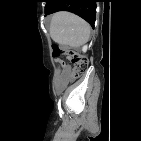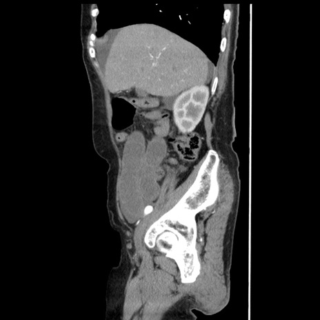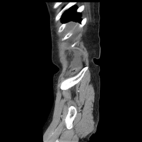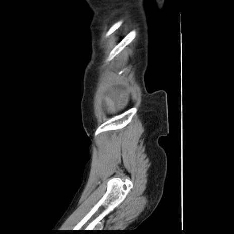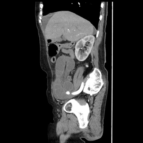 【症例】80歳代女性 【主訴】腹痛 【現病歴】8時間前から腹痛あり来院。 【既往歴】糖尿病、脂質異常症、子宮体癌にて子宮全摘術 【身体所見】意識清明・会話良好だが腹痛で苦悶様、全腹部にわたって反跳痛と圧痛あり 【データ】WBC 13600、CRP 0.14、LDH 224、CK 90